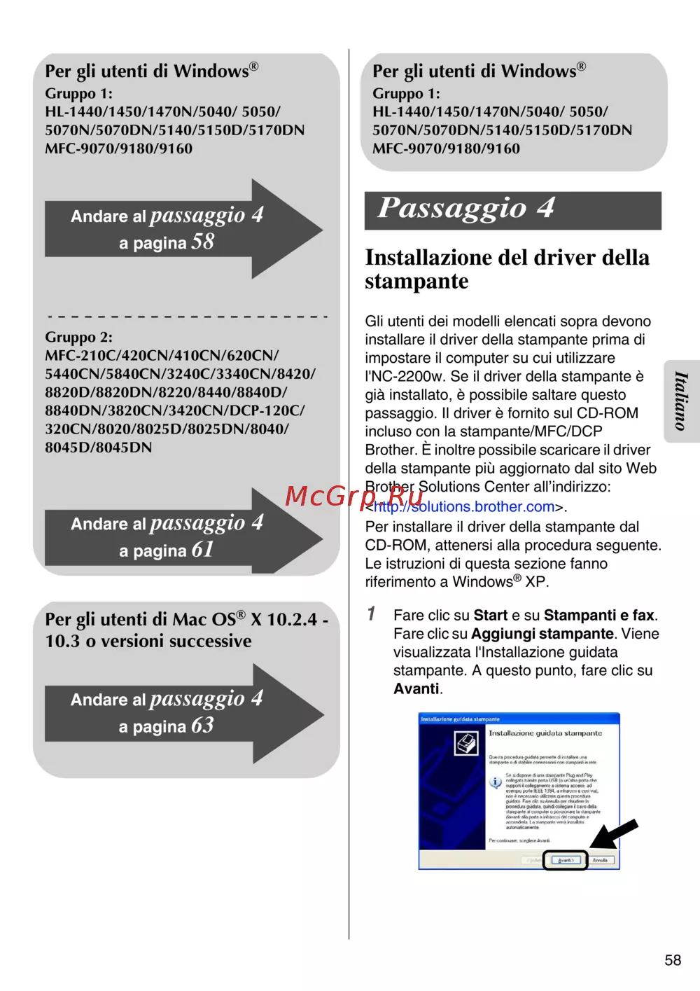 Brother NC-2200w — guida all'installazione del driver della stampante per Windows e Mac [59/159]