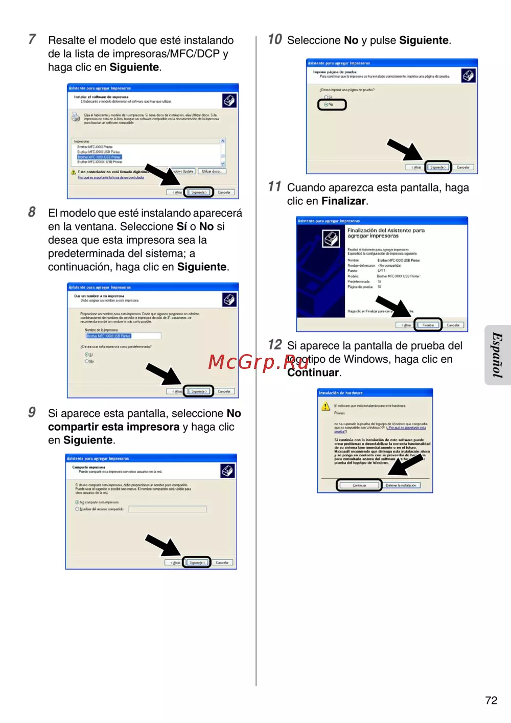 Brother NC-2200w — guía para la instalación de impresoras y configuración del sistema [73/159]