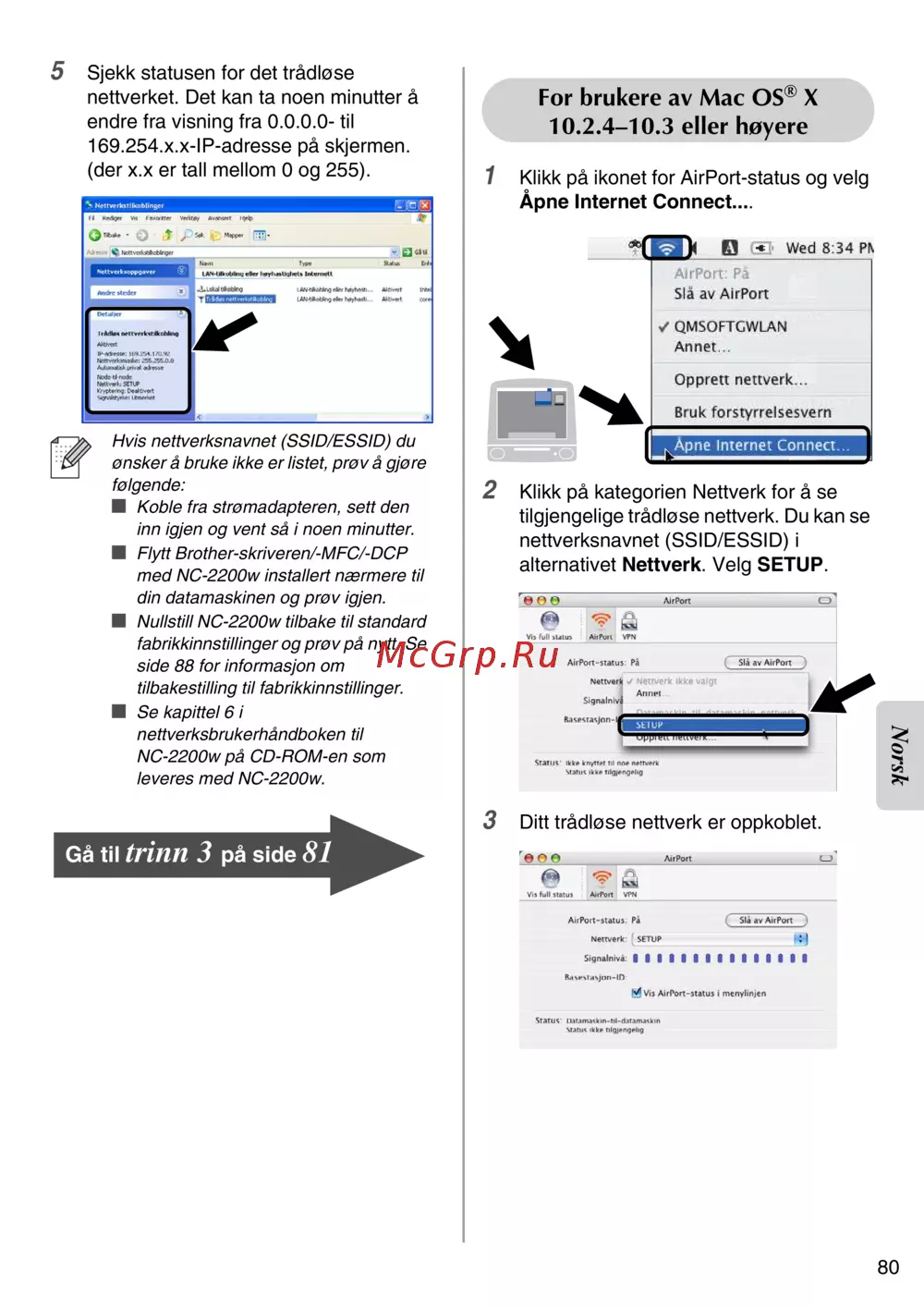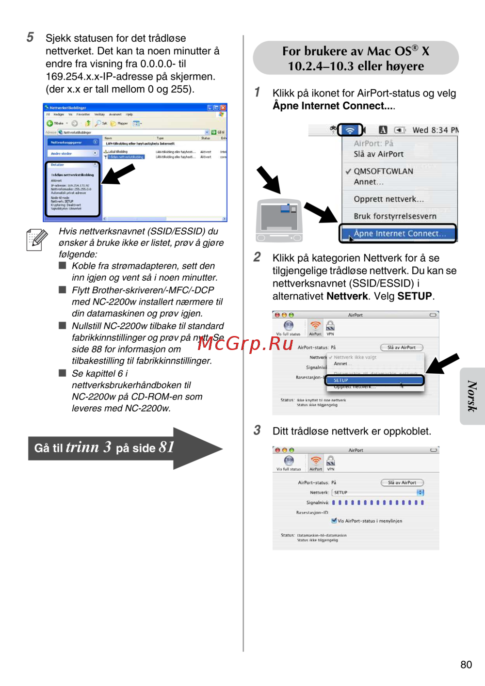 Brother NC-2200w — sjekk status for ditt trådløse nettverk og løs vanlige problemer [81/159]