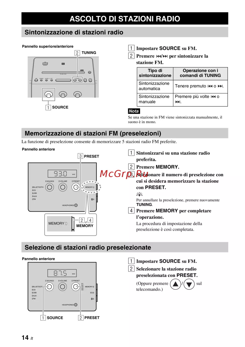 Yamaha TSX-B141 Champagne [138/248] Sintonizzazione di stazioni radio