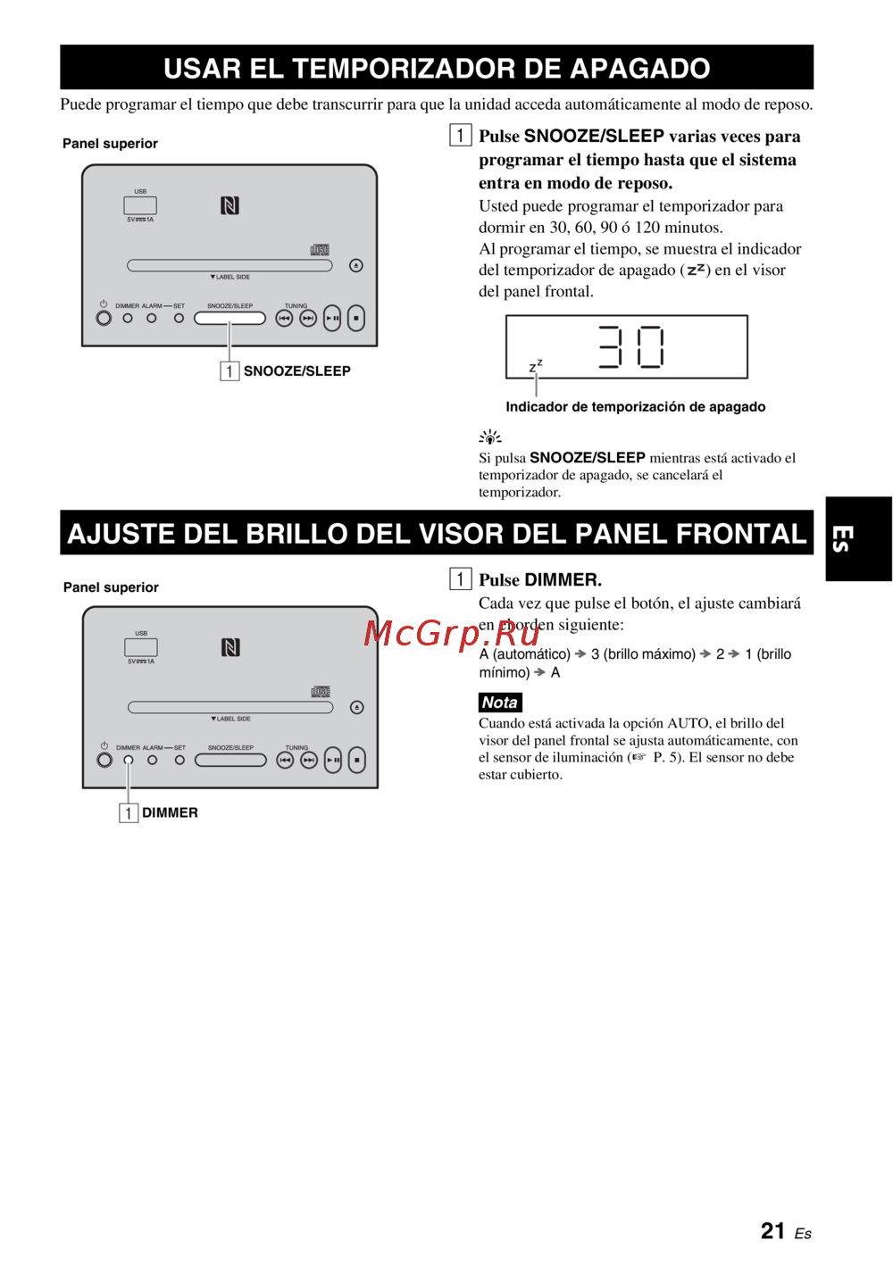 Si pulsa SNOOZE/SLEEP mientras está activado el