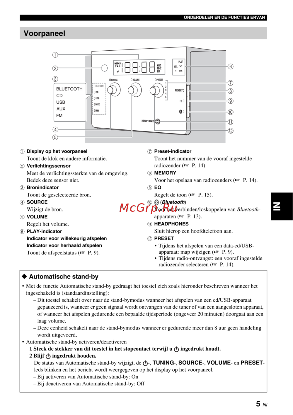 – Deze eenheid schakelt naar de stand-bymodus wanneer er gedurende meer dan 8 uur geen handeling