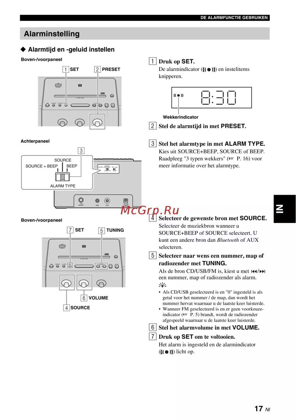 - Устройство имеет 3 типа будильников сочетающие музыку и звуковые сигналы p.230