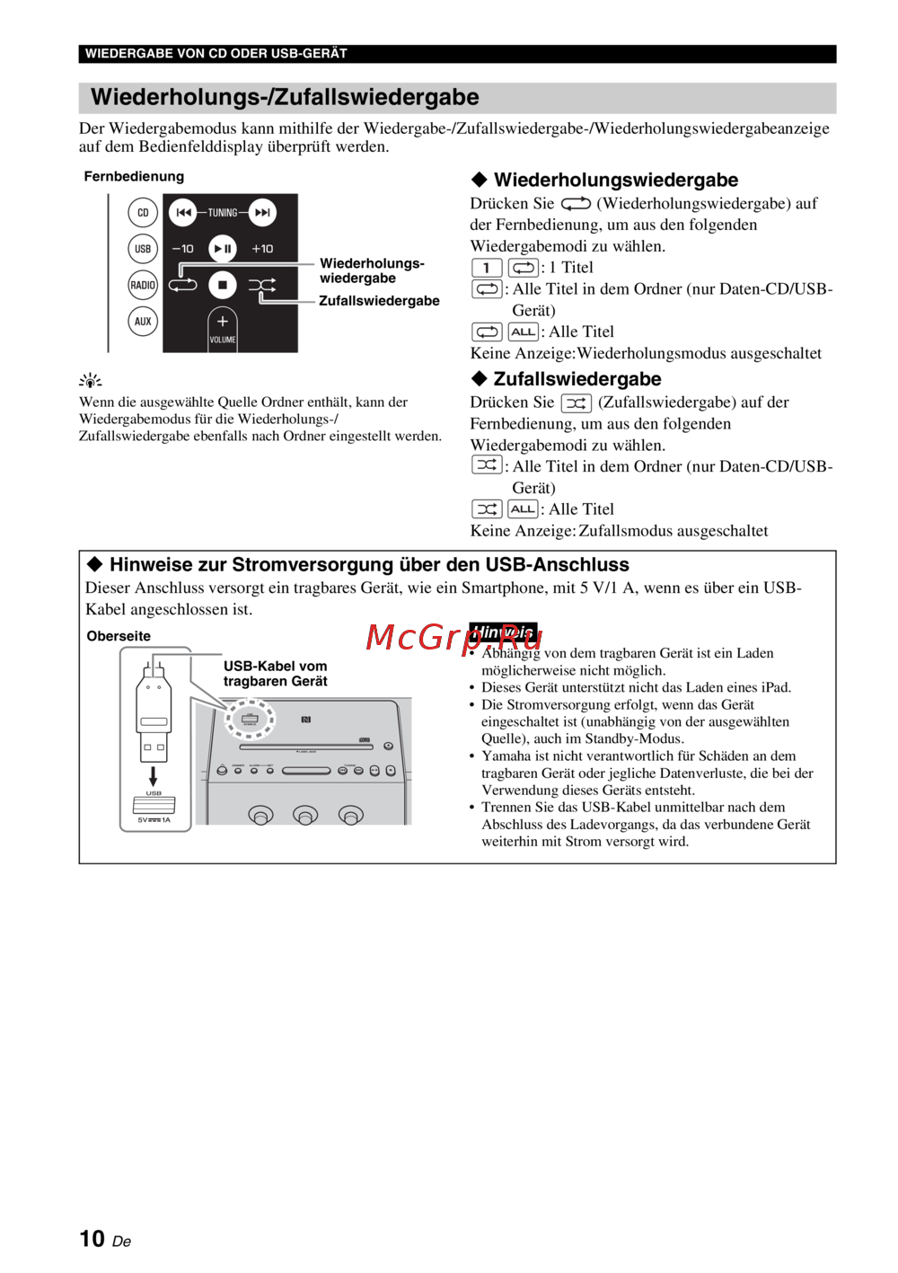 Yamaha TSX-B141 Champagne — wiedergabemodi für CD und USB-Geräte: Anleitung und Tipps [74/248]