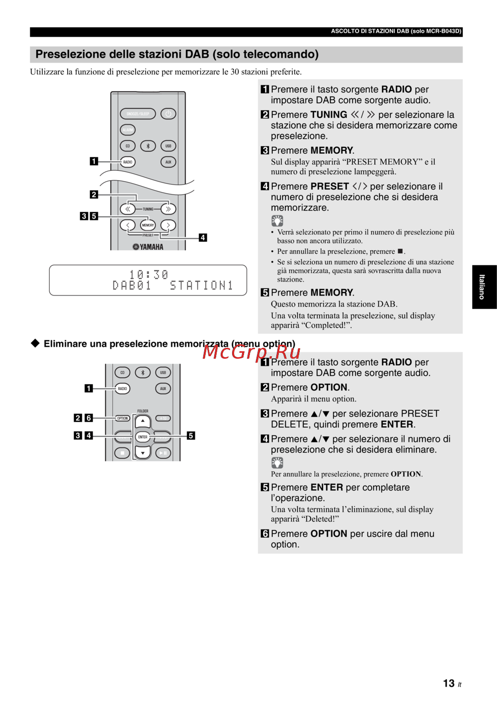 Yamaha MCR-B043 Black [127/228] Preselezione delle stazioni dab solo telecomando
