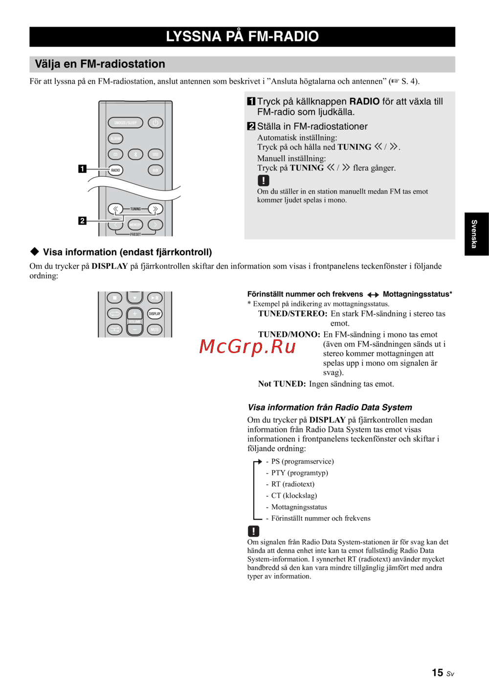 hända att denna enhet inte kan ta emot fullständig Radio Data