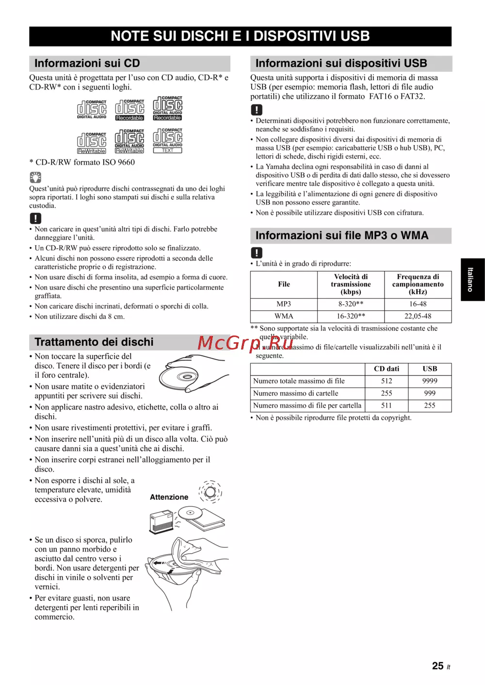 ![Yamaha MCR-B043 Orange [139/228] Trattamento dei dischi](/views2/1274265/page139/bg8b.png)