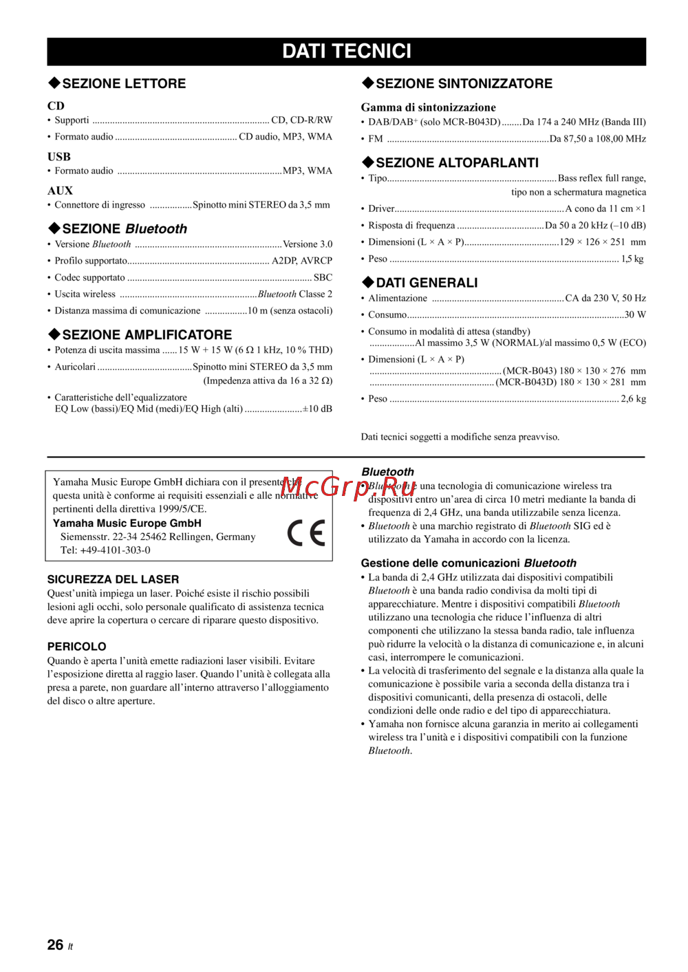 Yamaha MCR-B043 Orange — caratteristiche e specifiche di un lettore audio multifunzionale [140/228]