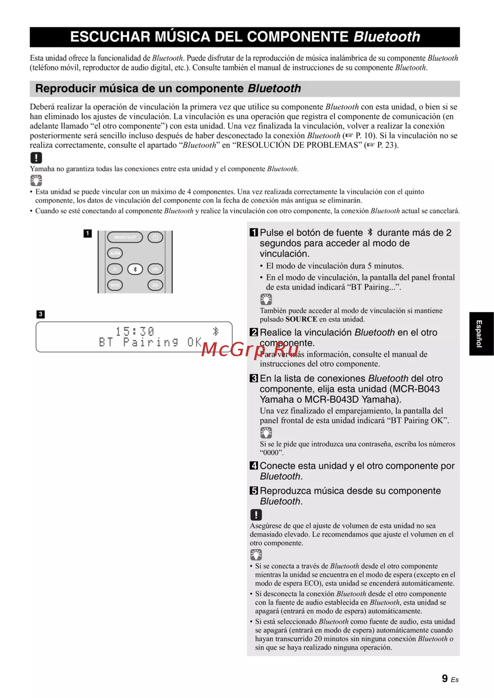 Yamaha no garantiza todas las conexiones entre esta unidad y el componente Bluetooth.