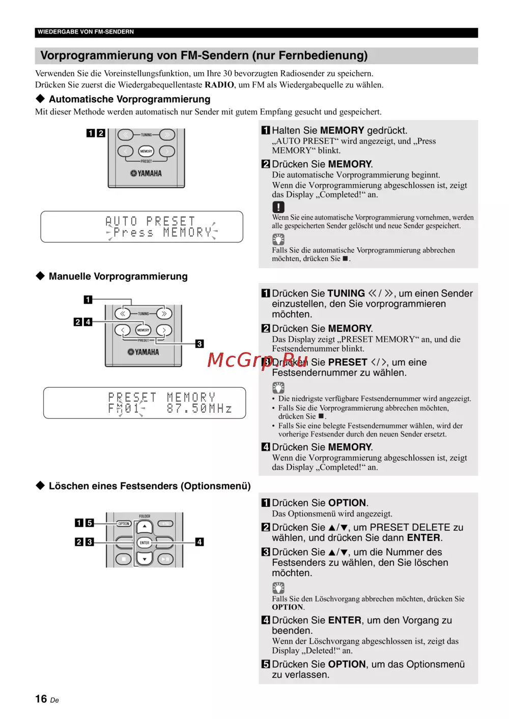 - Предварительная настройка fm радиостанций только с пульта ду p.214
