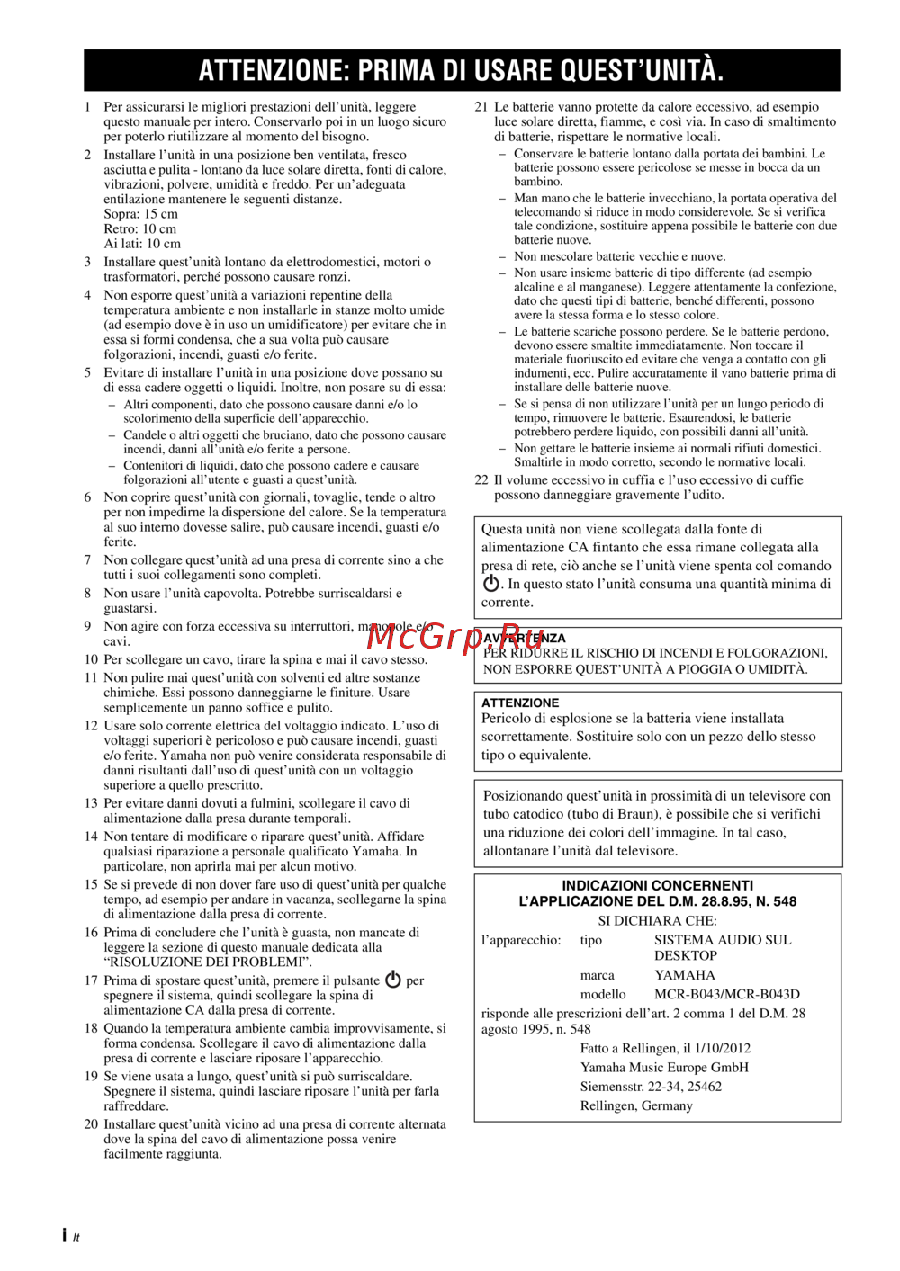 Yamaha MCR-B043 RedИнструкция по эксплуатации -