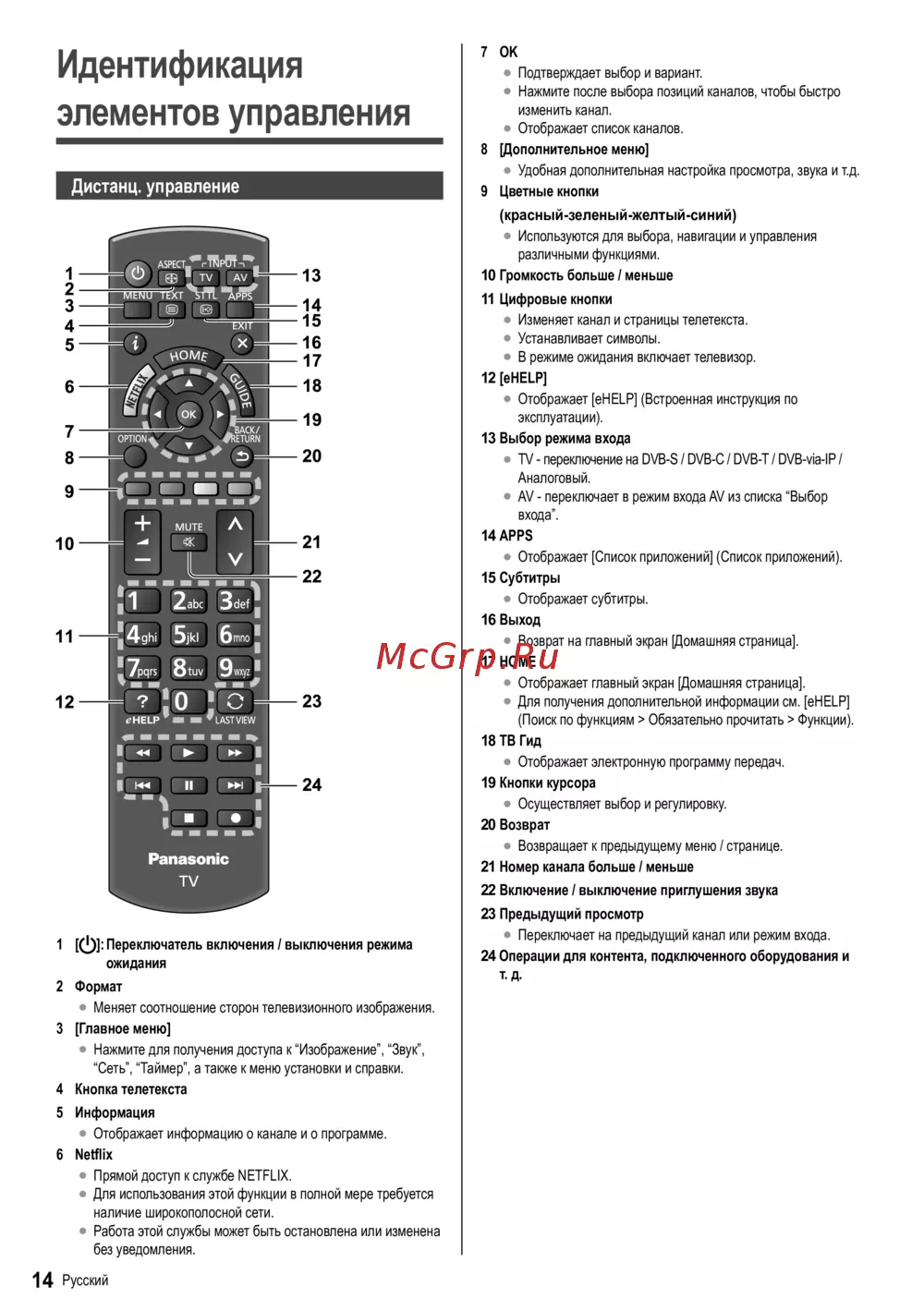 Panasonic TX-32ESR500 — идентификация элементов управления телевизором и их функции [14/25]
