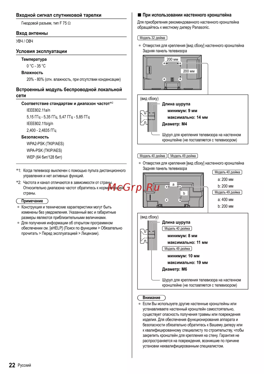 Узнайте о входных сигналах, условиях эксплуатации и установке настенного кронштейна для телевизоров. Подробные характеристики и советы по безопасности.