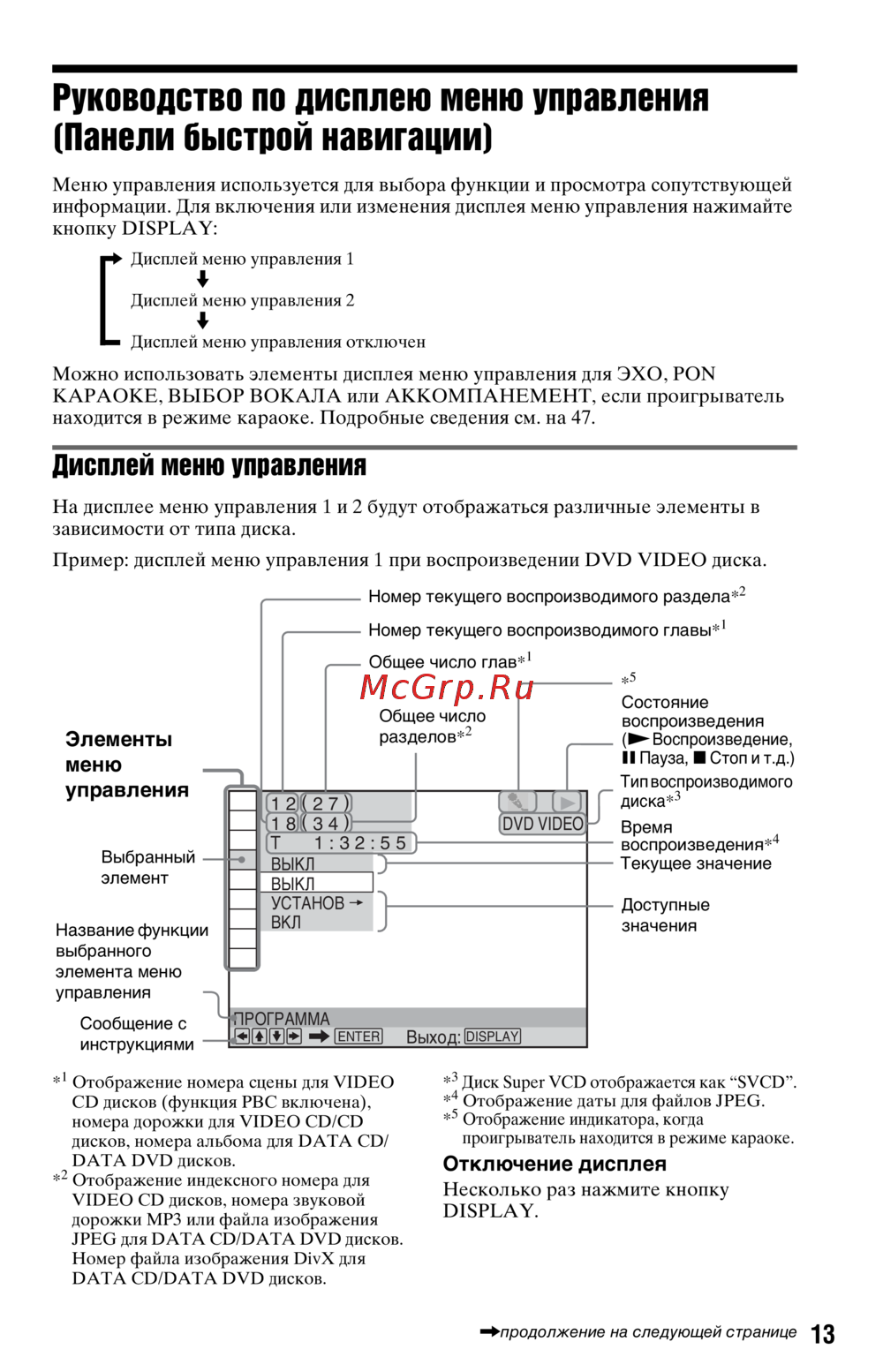Sony DVP-K68P black — руководство по дисплею меню управления для проигрывателей [13/88]