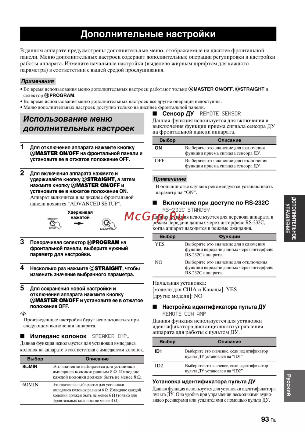 Yamaha RX-V1900 Titan — дополнительные настройки управления аудиоаппаратурой [97/142]