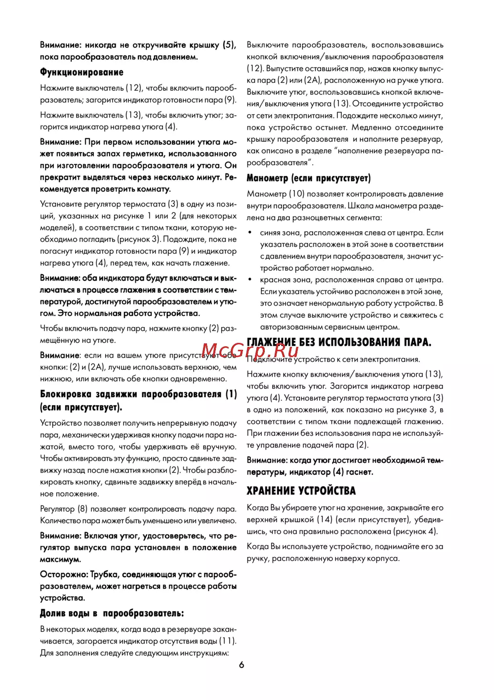 - Глажение без использования пара p.6