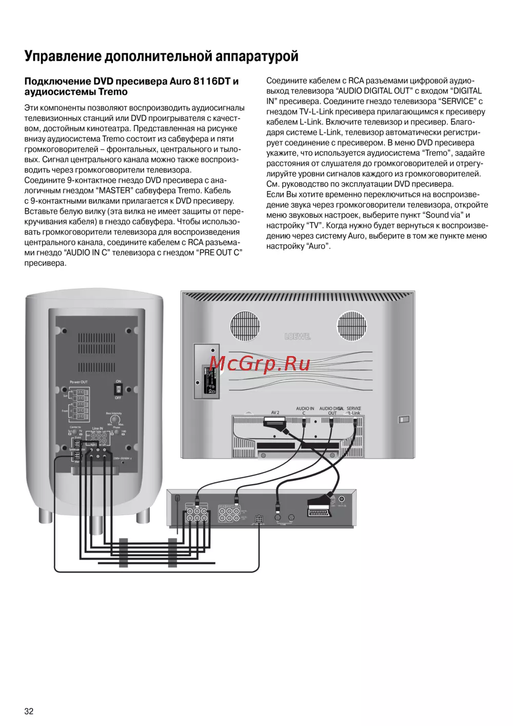 - Подключение dvd пресивера auro 8116dt и аудиосистемы tremo p.32