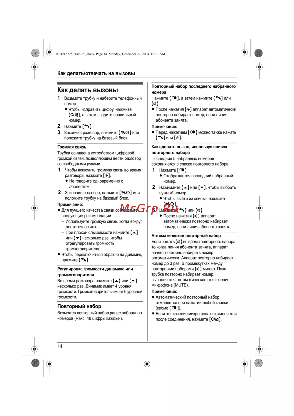 Panasonic KX-TCD225 RU-F — как правильно делать и отвечать на телефонные вызовы [14/64]