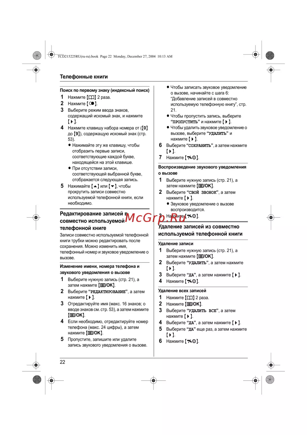 Panasonic KX-TCD225 RU-F — инструкция по редактированию и удалению записей телефонной книги [22/64]