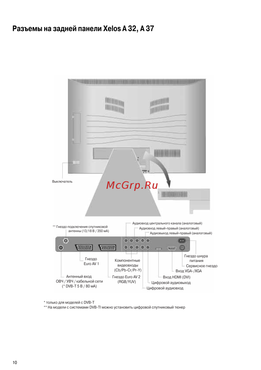 - Разъемы на задней панели xelos a 32 a 37 p.10
