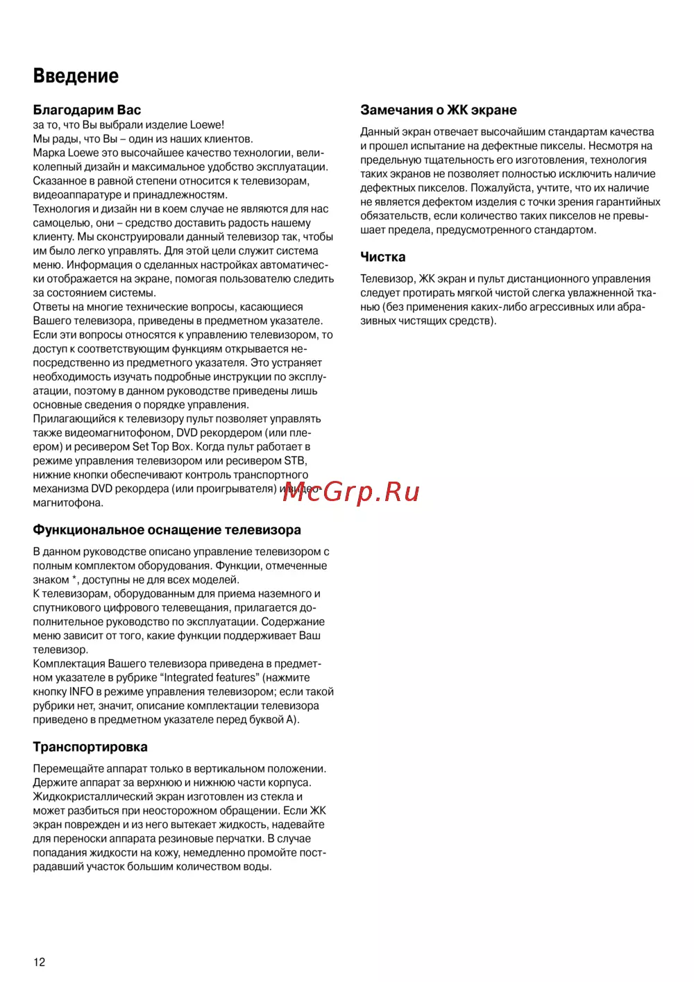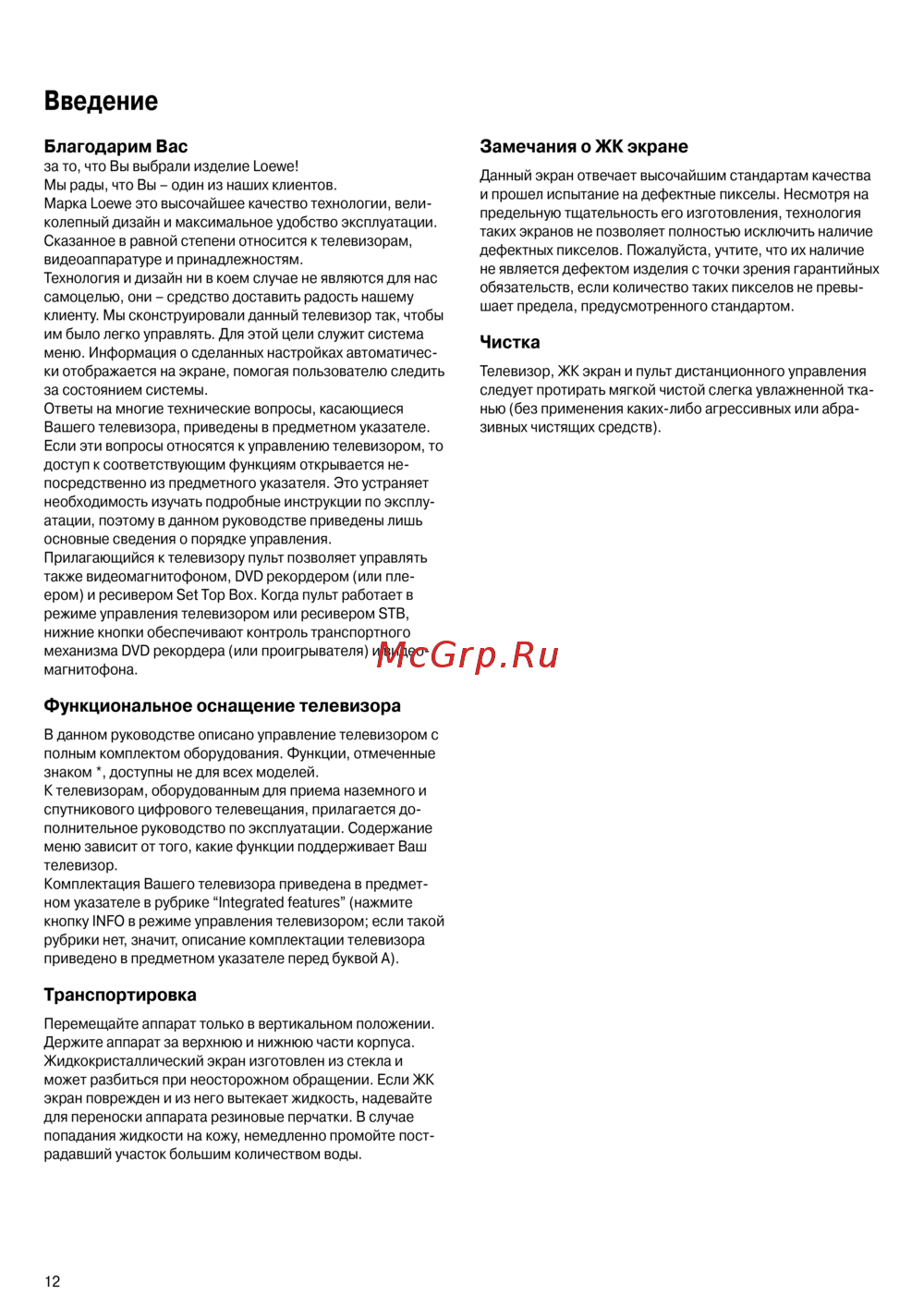 - Пульт дистанционного управления телевизора можно переключать в режимы непосредственного управления видеомагнитофонами или dvd проигрывателями loewe p.39
