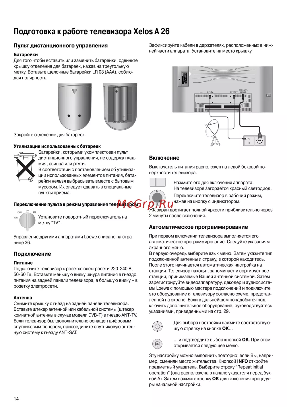 - Подготовка к работе телевизоров xelos a 32 a 37 p.15