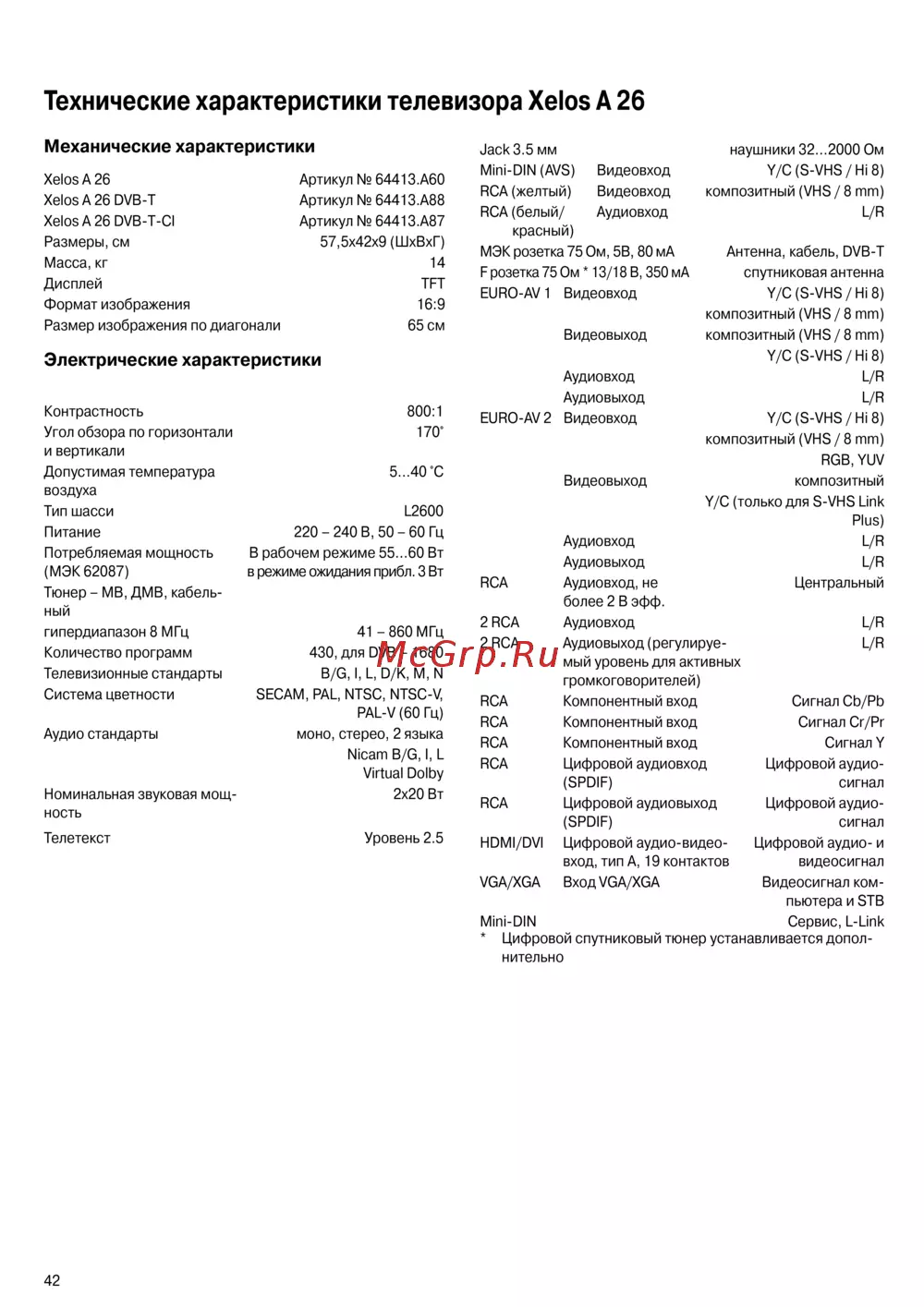 - Дополнительные принадлежности телевизора xelos a 26 p.43