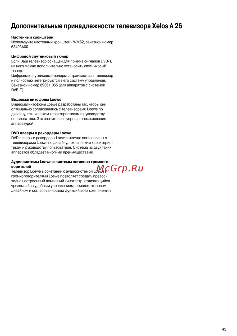 - Дополнительные принадлежности телевизора xelos a 26 p.43