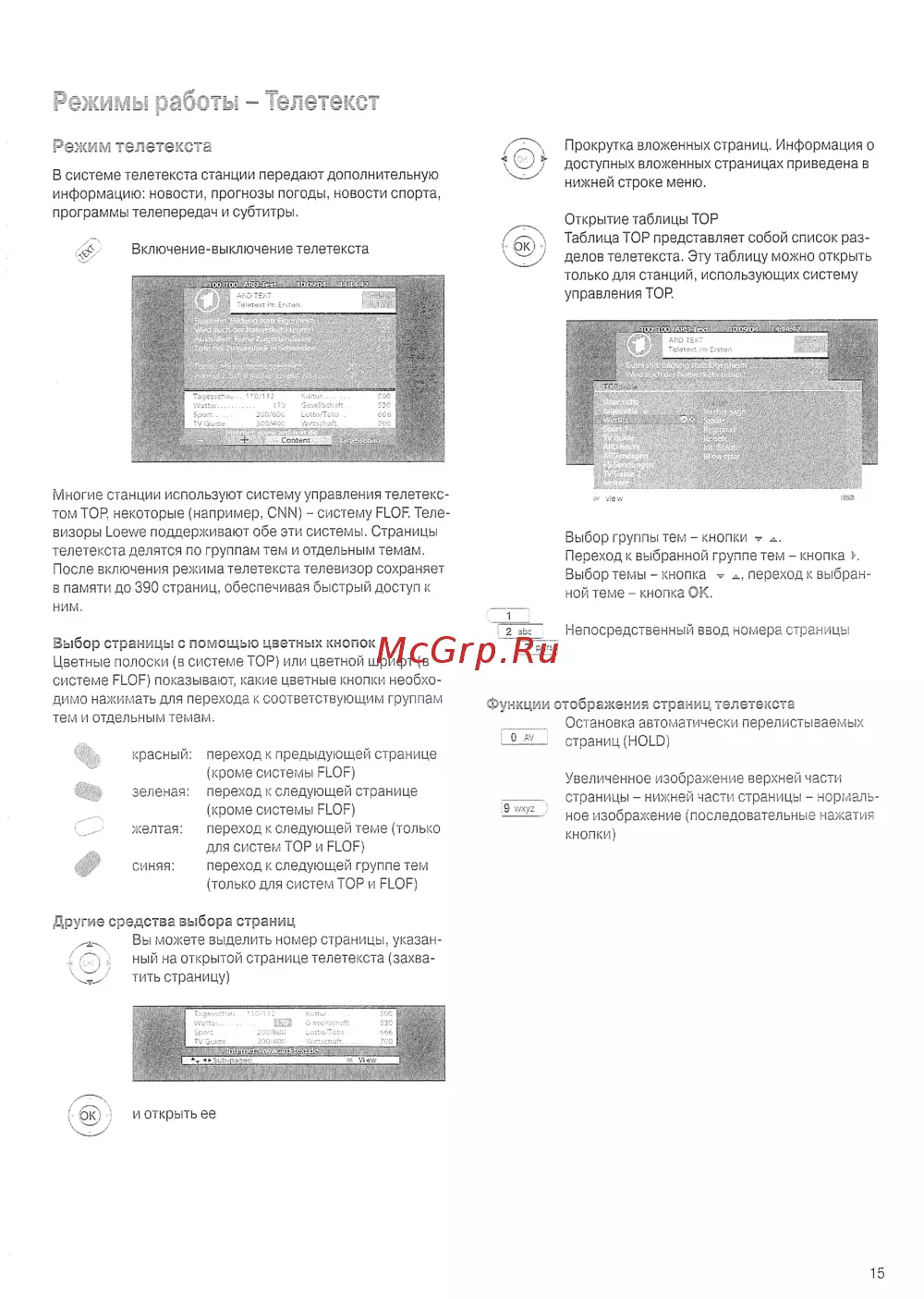 Loewe Xelos A20 platinum — режим телетекста: управление и функции для пользователей [15/24]