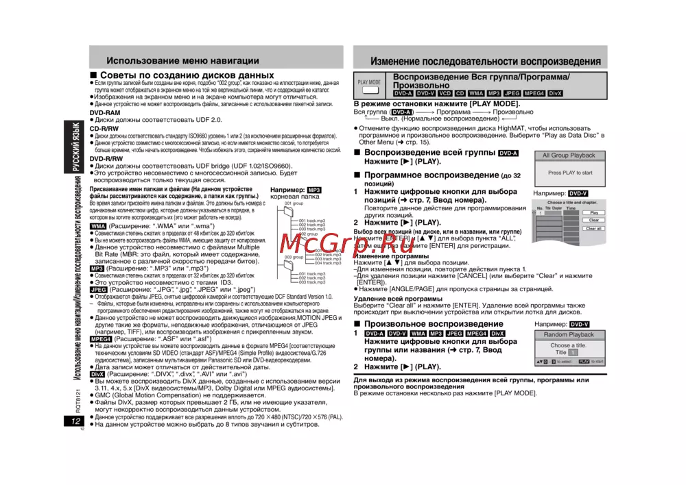 Panasonic DVD-S49 EE-S — советы по использованию меню навигации и созданию дисков данных [12/23]