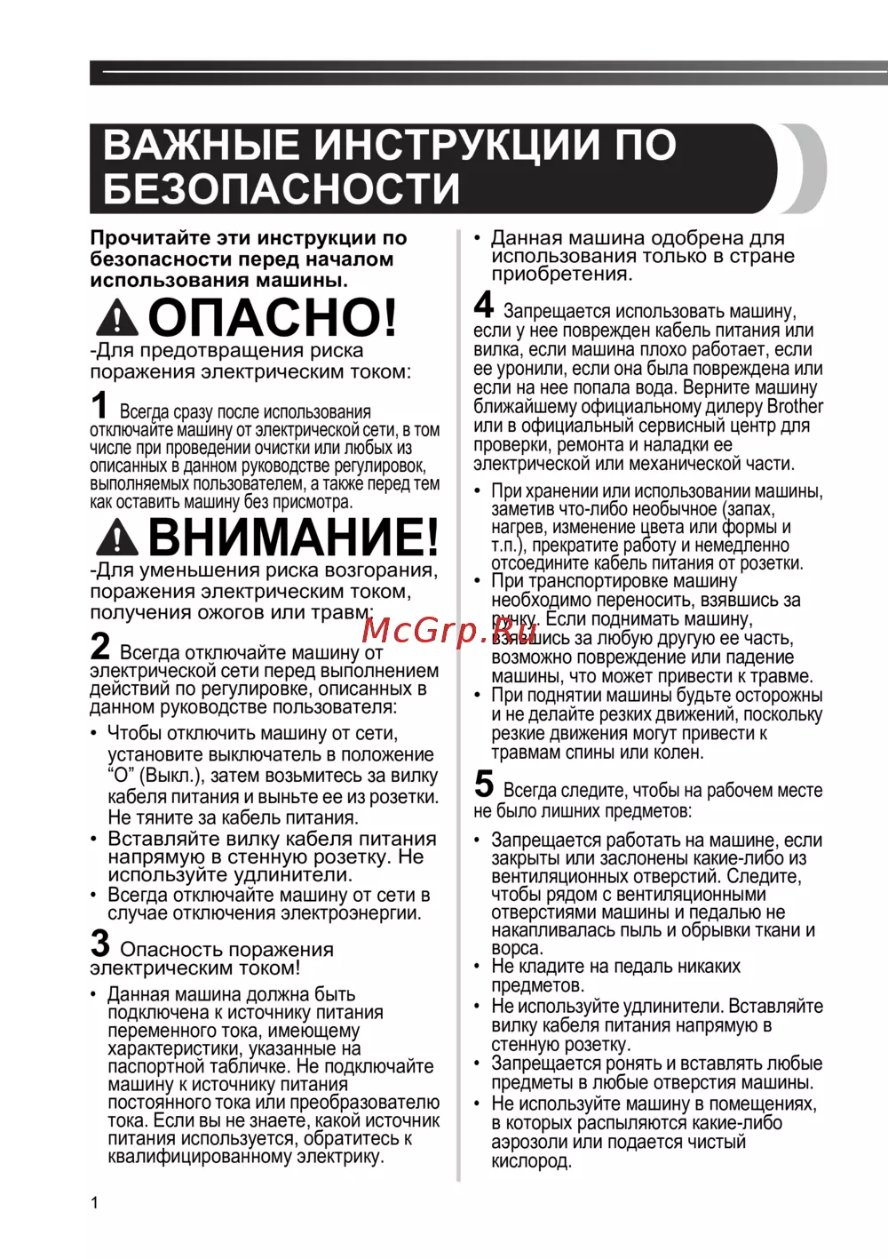 - Не включайте машину во время нажатия на педаль машина может неожиданно начать работать что может привести к телесным повреждениям или порче машины p.38