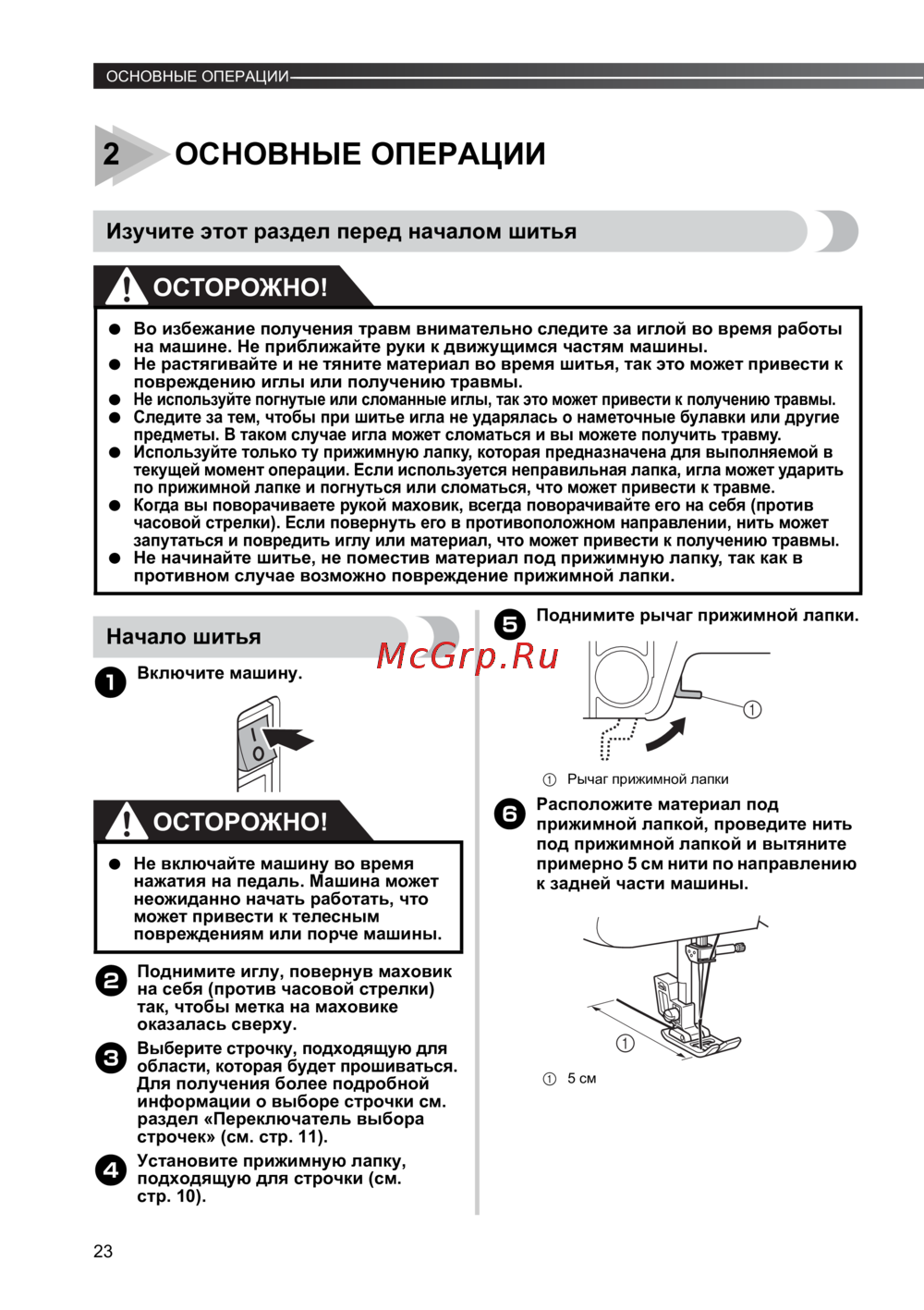● Во избежание получения травм внимательно следите за иглой во время работы