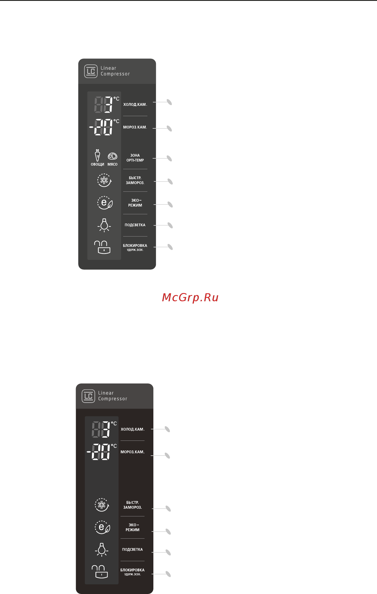 - Еще раз подсветка погаснет и операция быстрой заморозки прекратится а холодильник вернется в предыдущее состояние в предыдущий температурный режим p.17