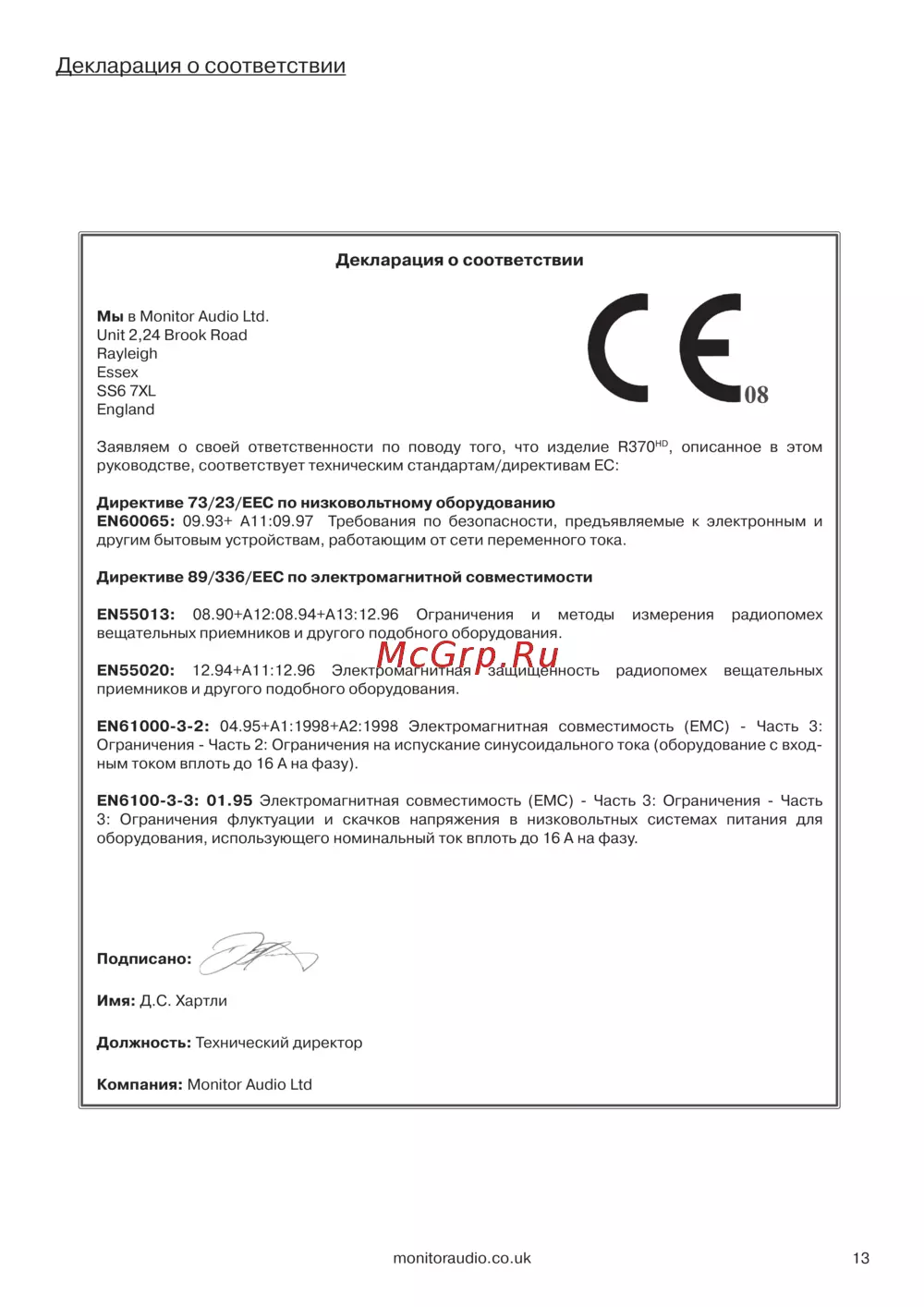 Monitor Audio Radius 370HD Black Gloss — декларация о соответствии техническим стандартам и директивам [15/18]