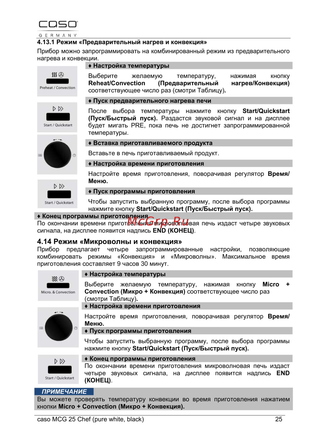 Caso MCG 25 Chef (3350) [25/33] Режим микроволны и конвекция