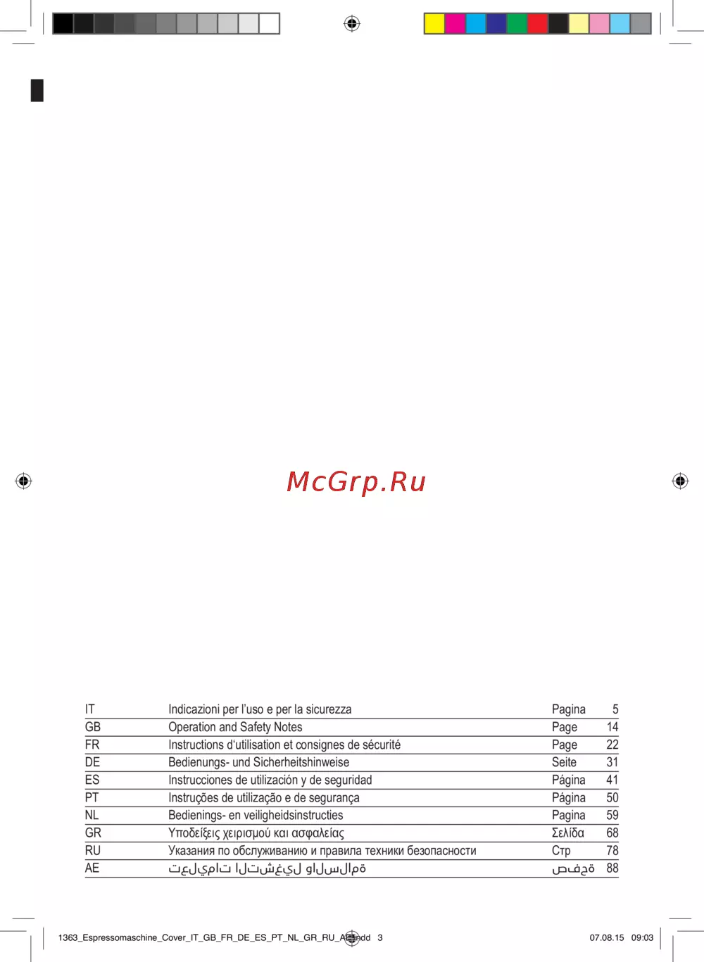 1363_Espressomaschine_Cover_IT_GB_FR_DE_ES_PT_NL_GR_RU_AE.indd 3 07.08.15 09:03