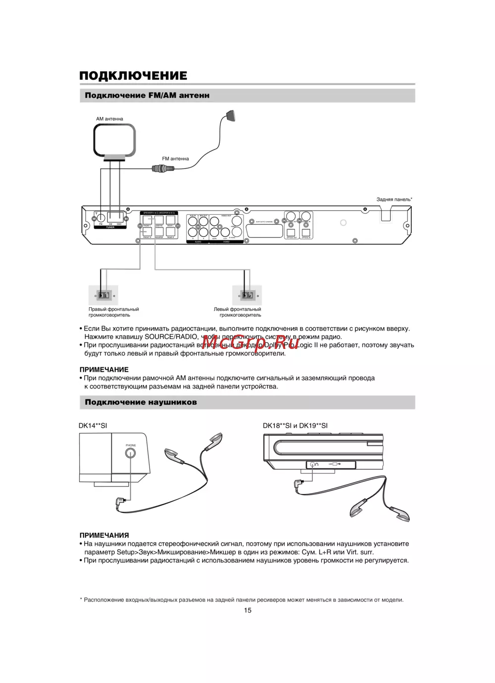 - Расположение входных выходных разъемов на задней панели ресиверов может меняться в зависимости от модели p.15