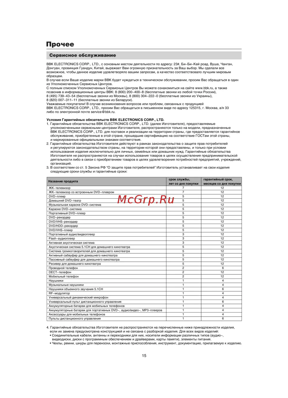 BBK 20 LT2002 S — гарантийное и сервисное обслуживание электроники: важная информация [17/20]