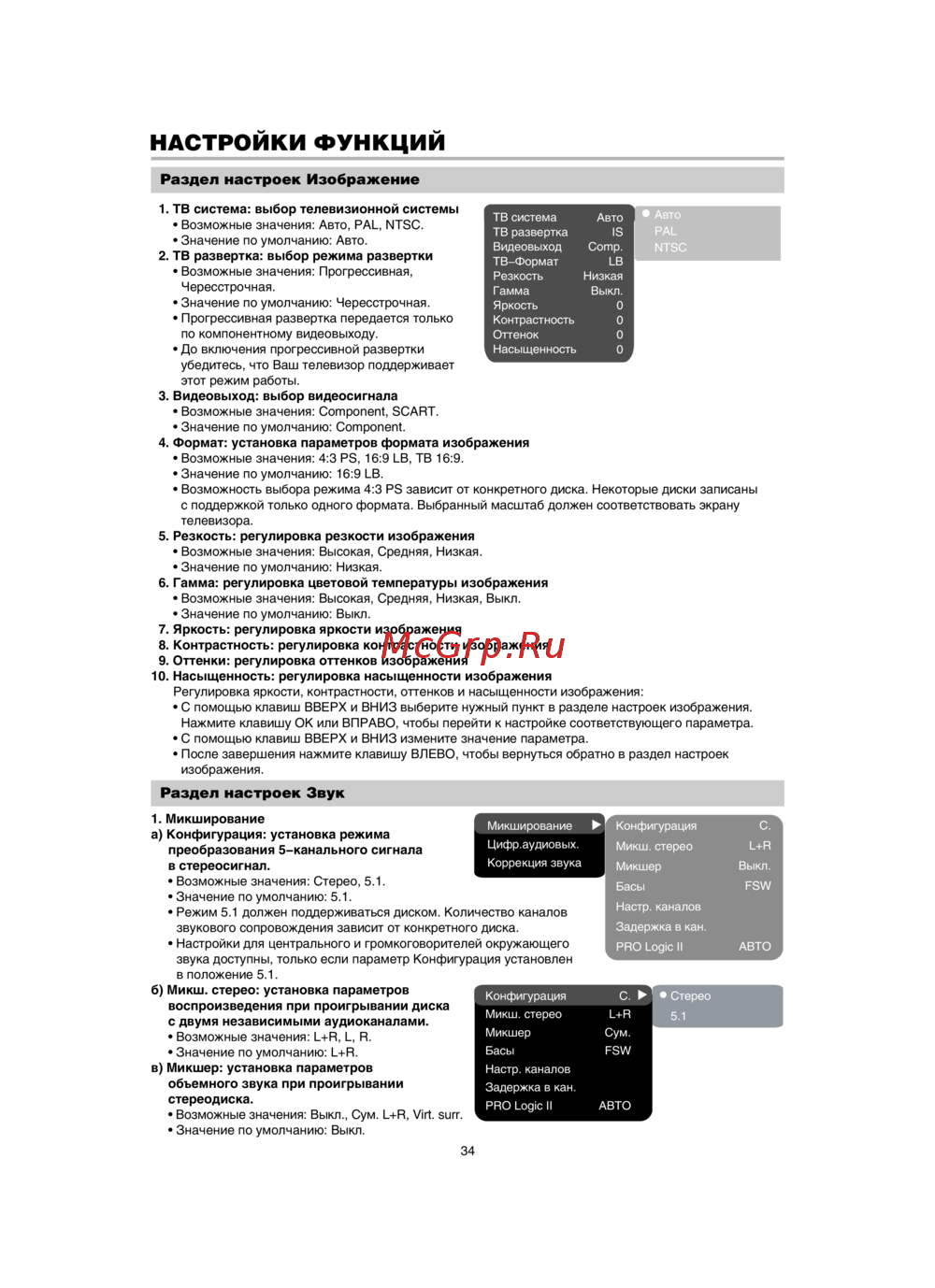• Возможные значения: 4:3 PS, 16:9 LB, ТВ 16:9.