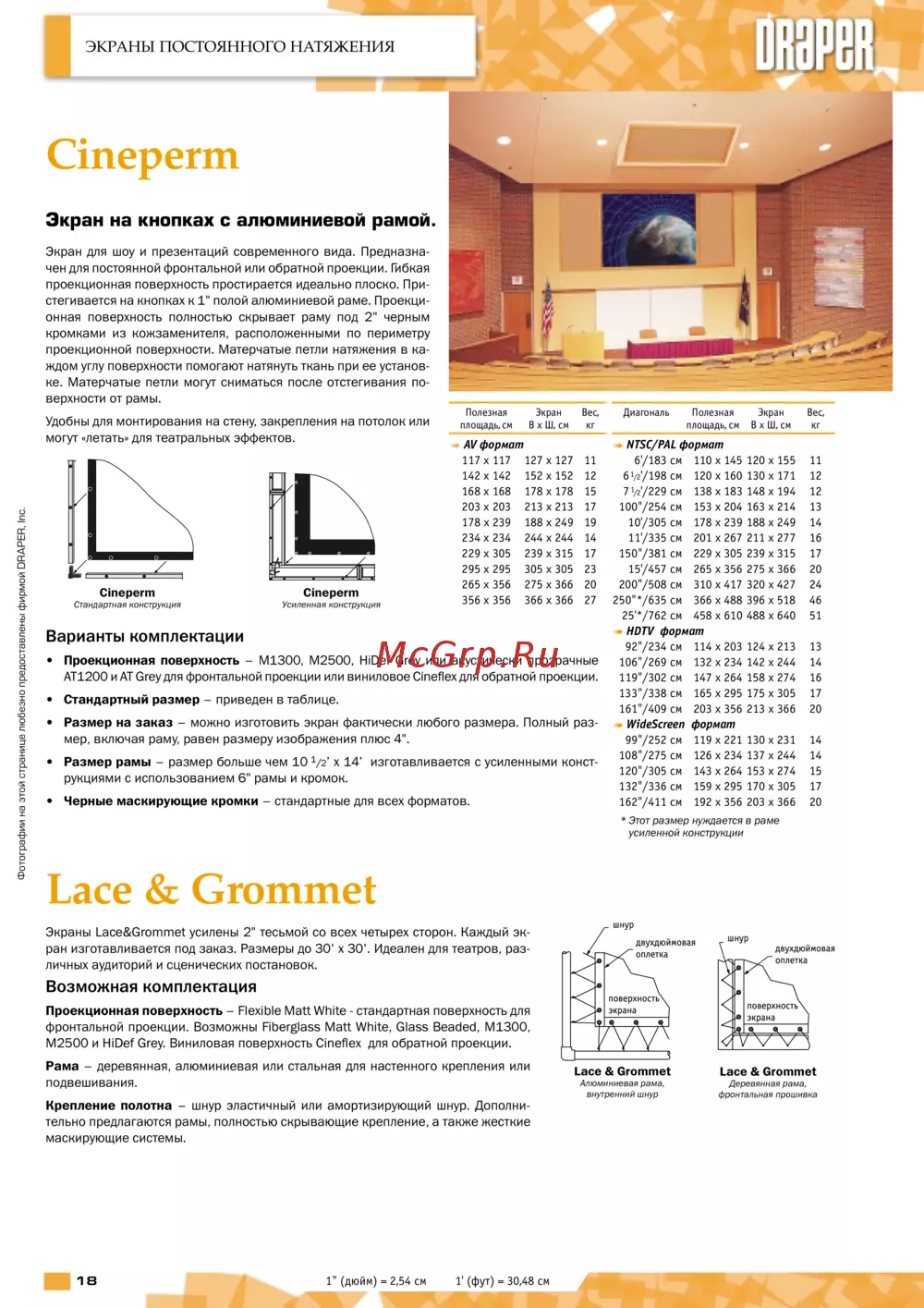 Экраны Lace&Grommet усилены 2" тесьмой со всех четырех сторон. Каждый эк-
