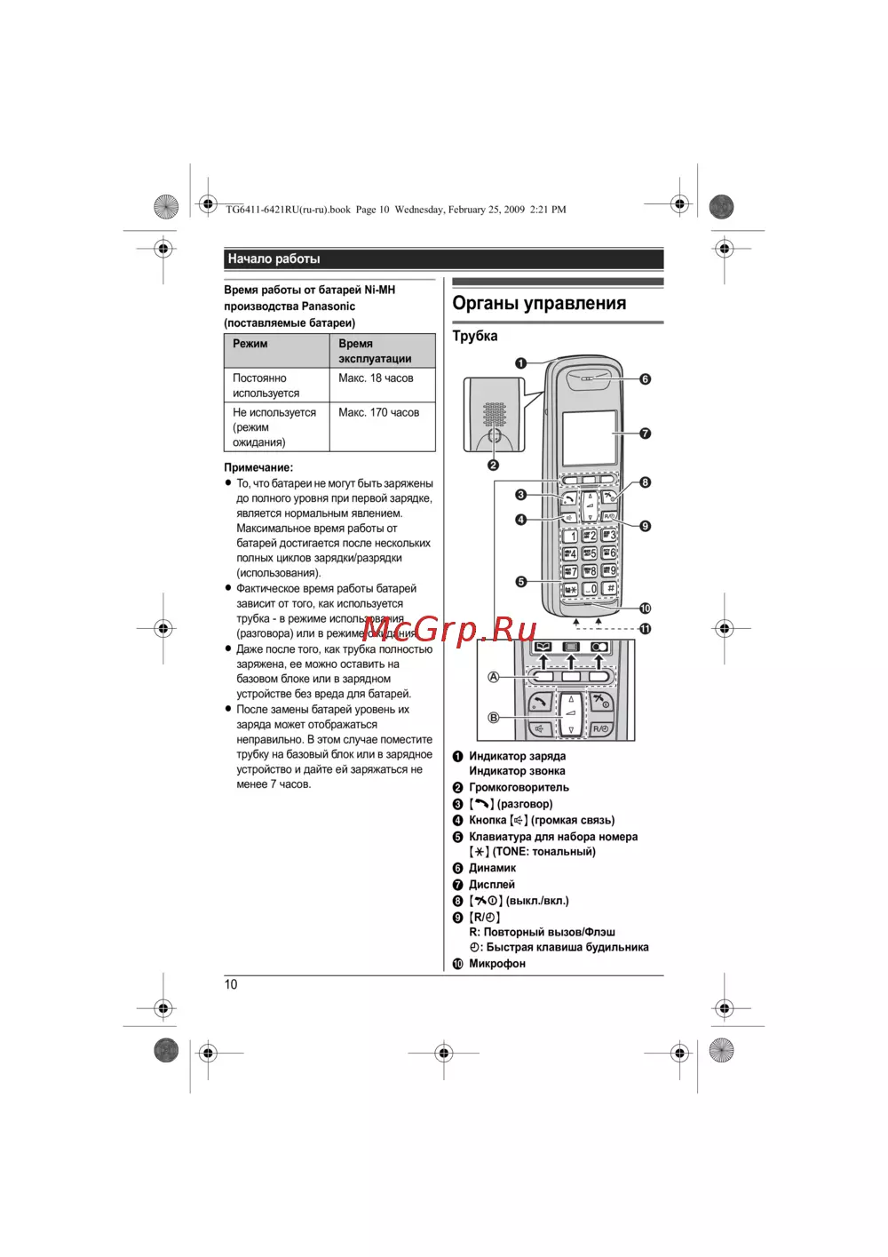 Panasonic KX-TG6421RUT — информация о работе и зарядке Ni-MH батарей [10/56]