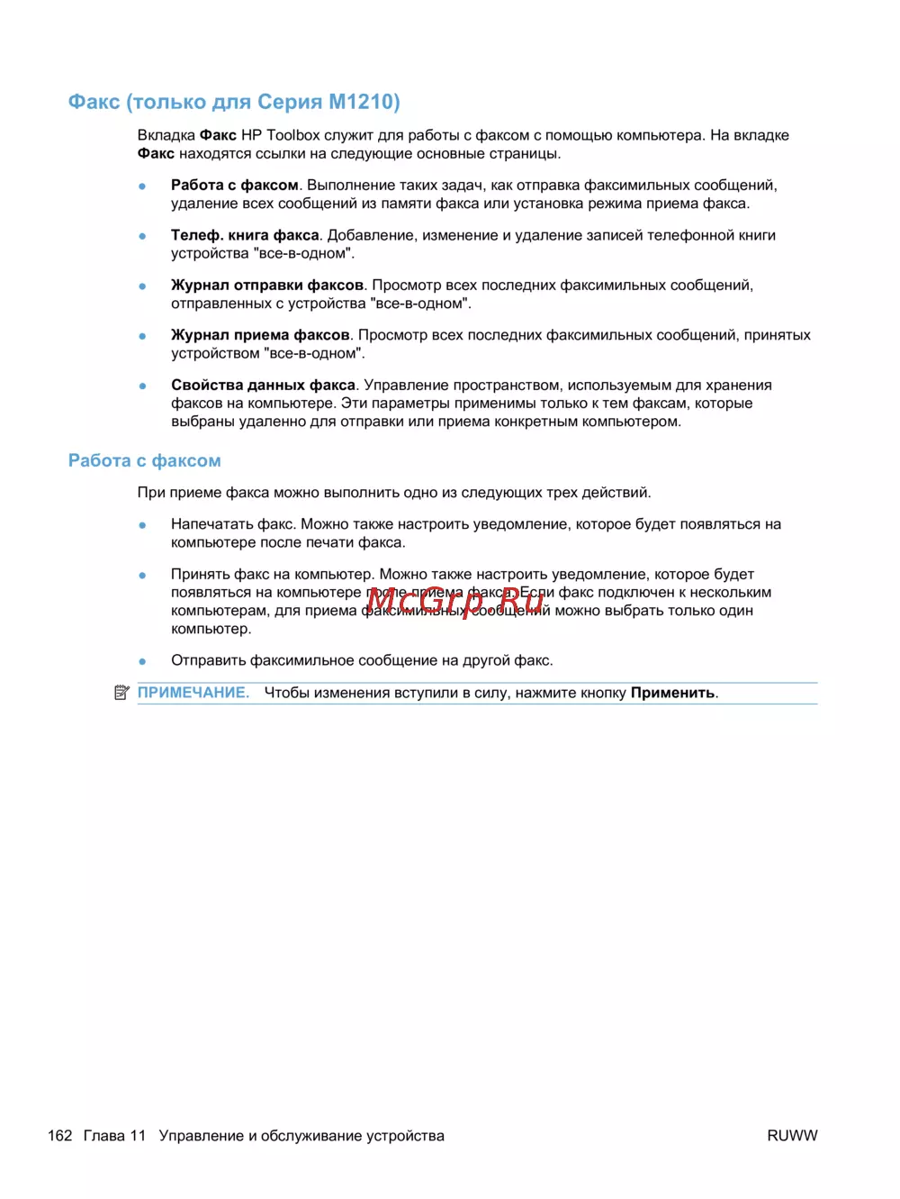 HP LaserJet M1217nfw /CE844A.B19/ — управление факсом с помощью компьютера: основные функции и настройки [176/298]