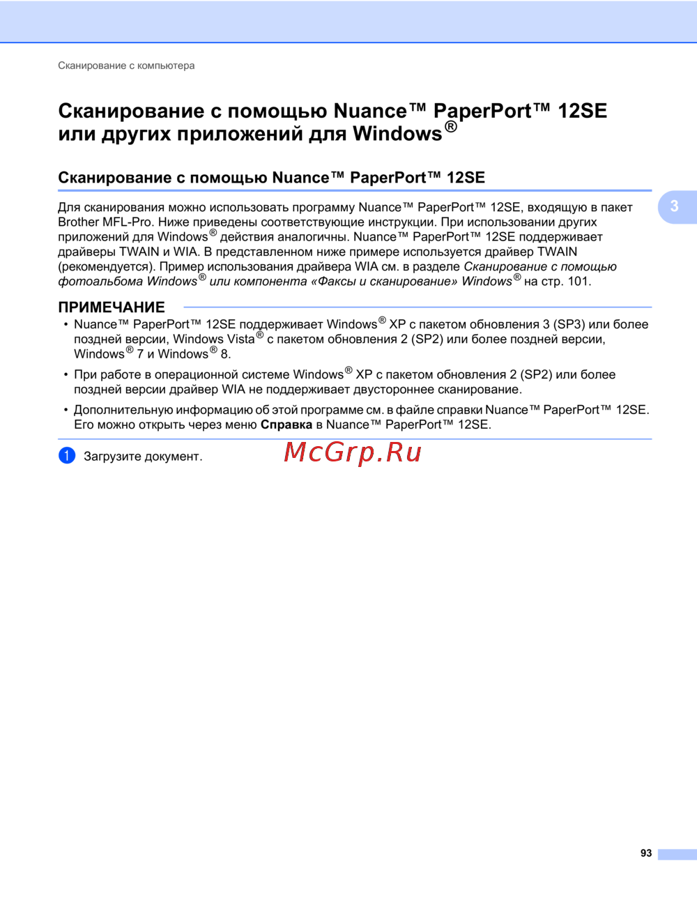 Brother ADS1600W (ADS1600WR1) [107/252] Сканирование с помощью nuance paperport 12se или других приложений для windows