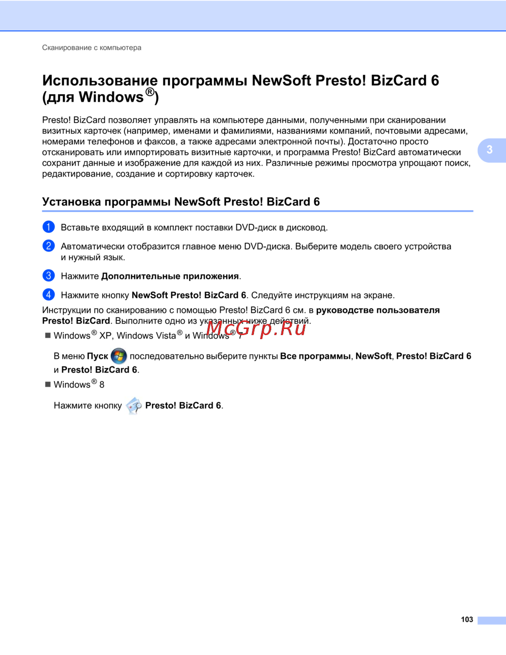 Brother ADS1600W (ADS1600WR1) [117/252] Использование программы newsoft presto bizcard 6 для windows