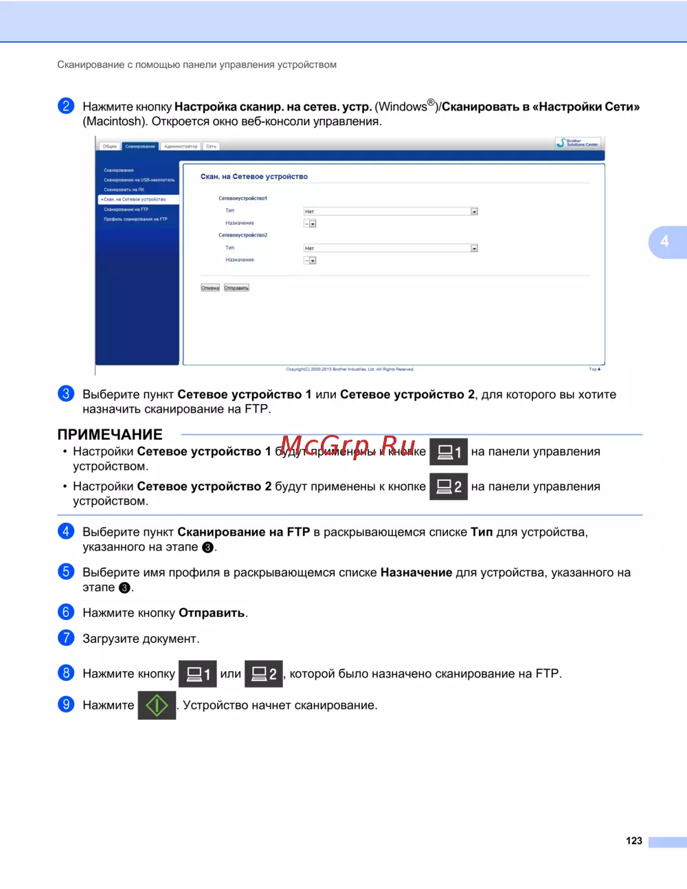 4 Выберите пункт Сканирование на FTP в раскрывающемся списке Тип для устройства,