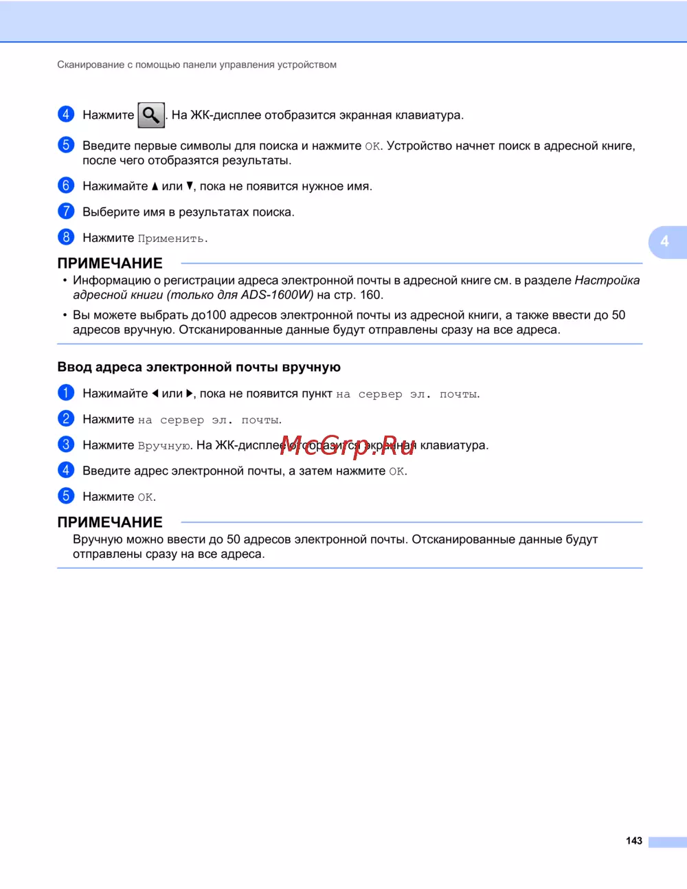 адресной книги (только для ADS-1600W) на стр. 160.