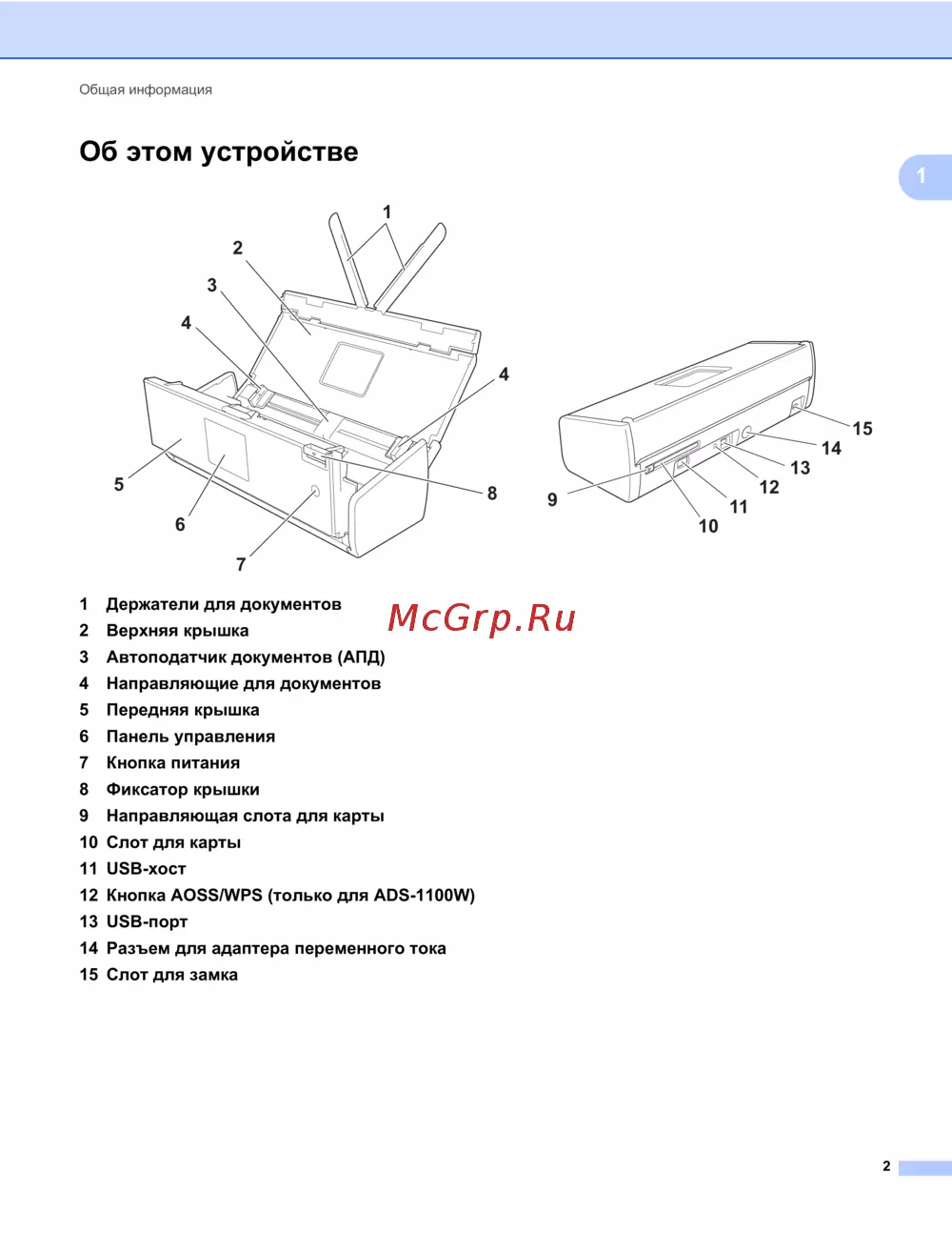 Brother ADS1600W (ADS1600WR1) [16/252] Об этом устройстве