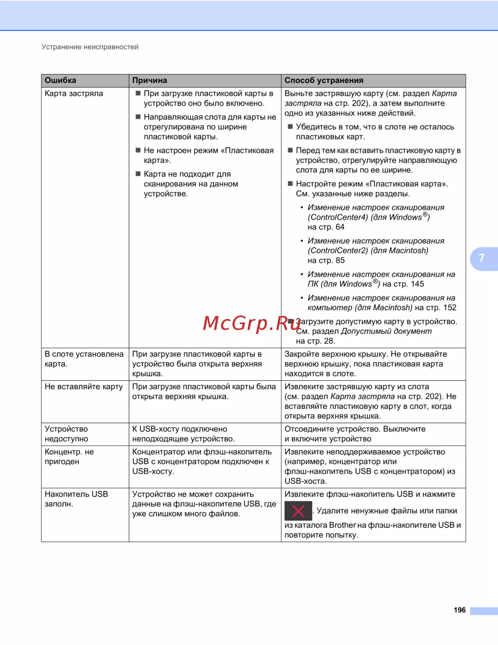 Brother ADS1600W (ADS1600WR1) — устранение неисправностей с пластиковыми картами и USB-устройствами [210/252]