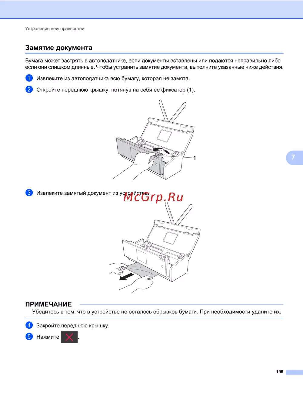 Brother ADS1600W (ADS1600WR1) — как устранить замятие бумаги в автоподатчике: пошаговое руководство [213/252]