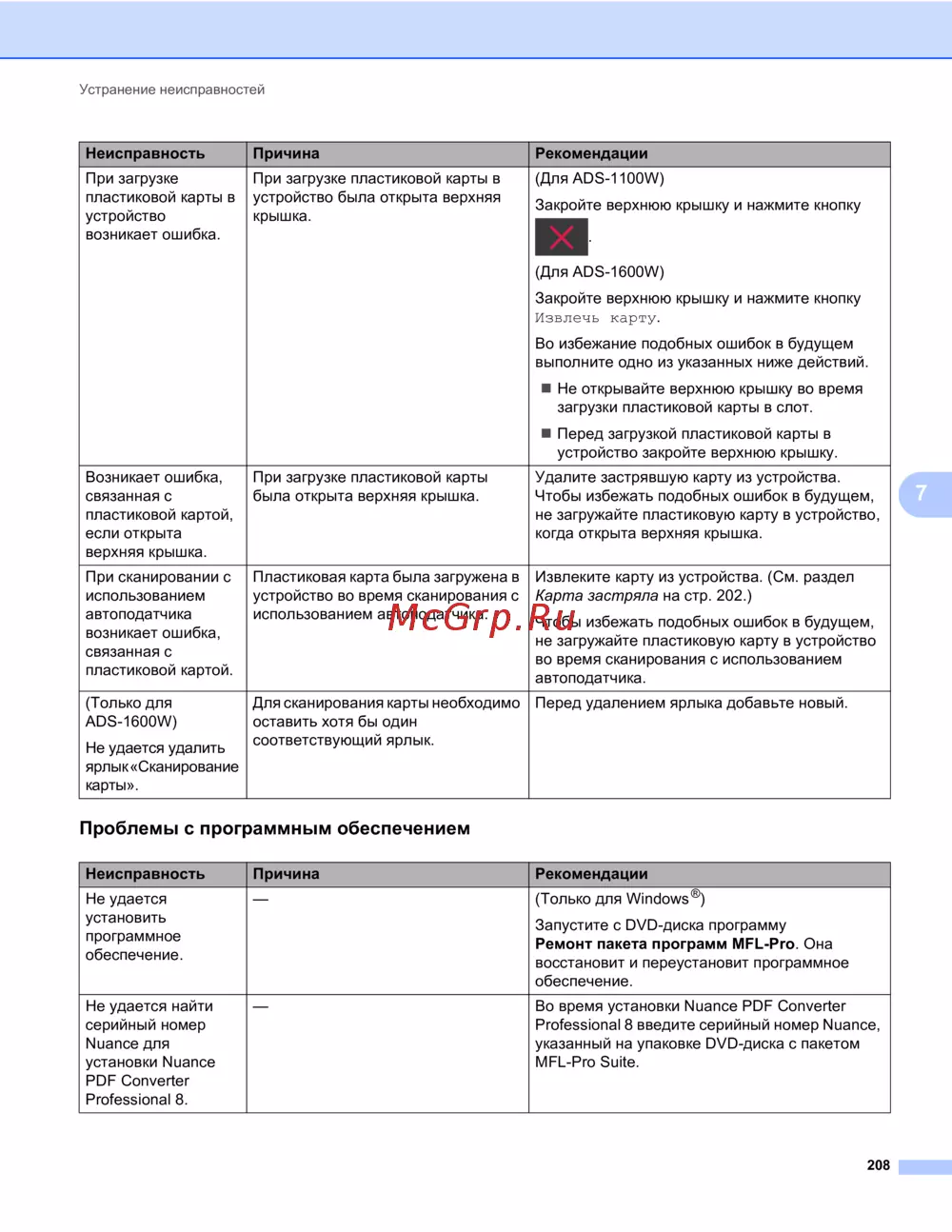 - Устранение неисправностей p.208